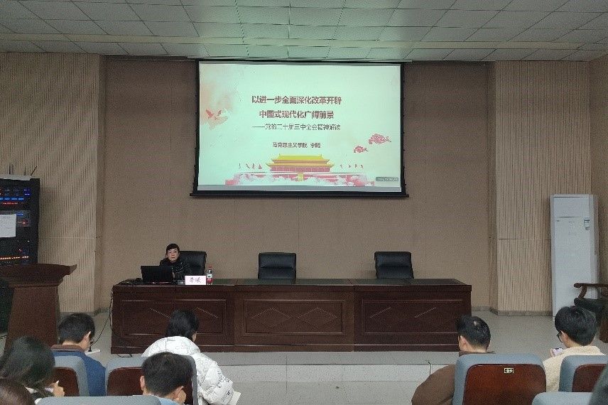 分党校于教五栋108报告厅举行第一期发展对象党课培训班第五讲课程,此次课程由马克思主义学院党委副书记、副院长李曦教授主讲,为学员们深入解读党的二十届三中全会精神。