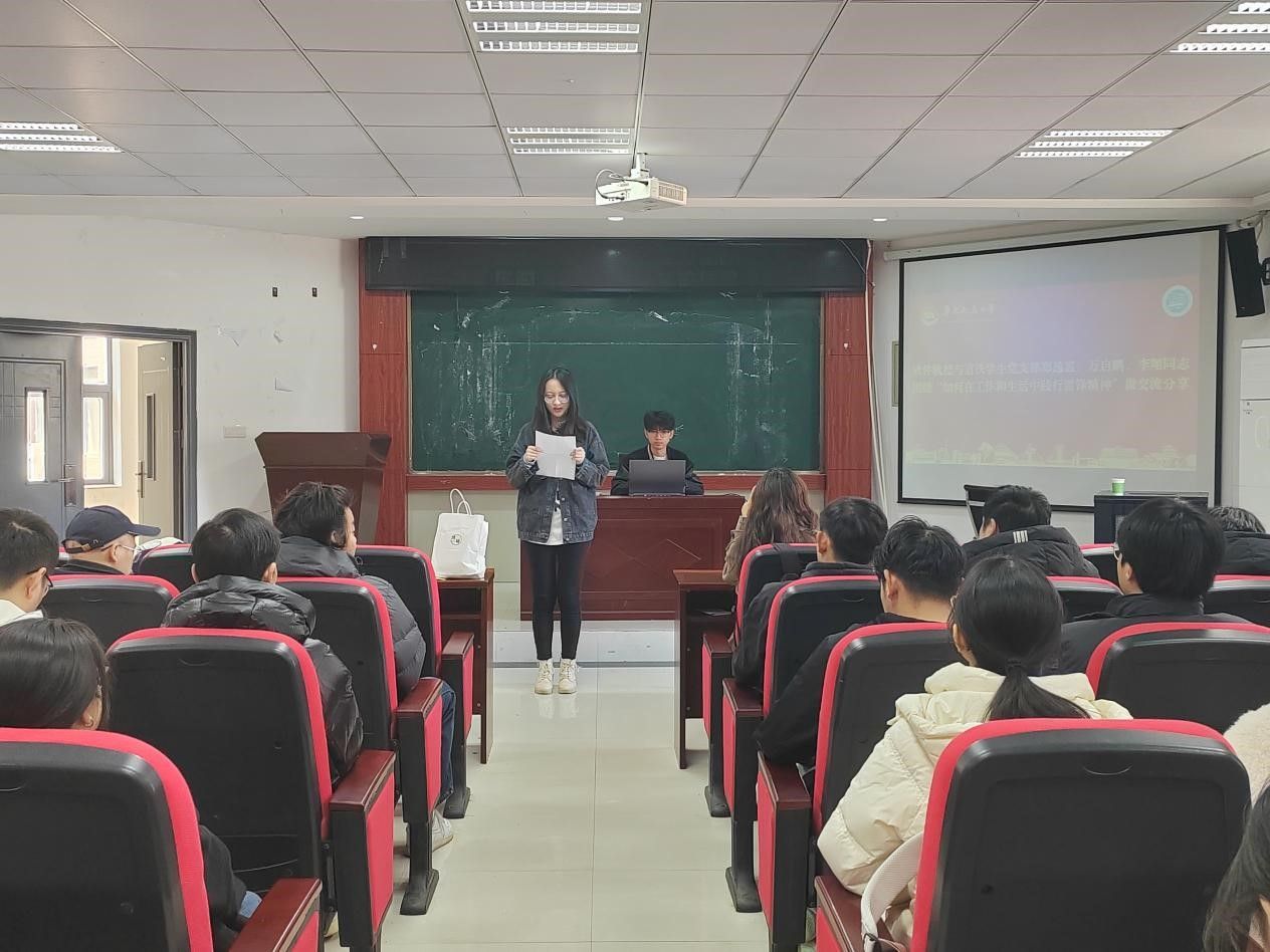 接着,在“如何在工作和生活中践行雷锋精神”主题研讨环节,支部党员代表郑逸嘉、万启鹏、李翔同志结合自身实际,以“践行雷锋精神,做新时代的传承人”为主题,分享了在学习、工作和生活中践行雷锋精神的具体事迹和感悟。郑逸嘉同志讲述了自己在支部志愿服务活动中的所见所感,强调了团队协作与无私奉献的重要性;万启鹏同志从学业角度出发,分享了如何将雷锋精神融入到学习态度中,倡导“精益求精,追求卓越”的学习理念;李翔同志则结合学生工作经验,谈到要以实际行动为同学服务,努力解决同学们在学习和生活中遇到的问题。三位党员的发言既体现了个人的实际经历,又为全体党员提供了可借鉴的实践经验。