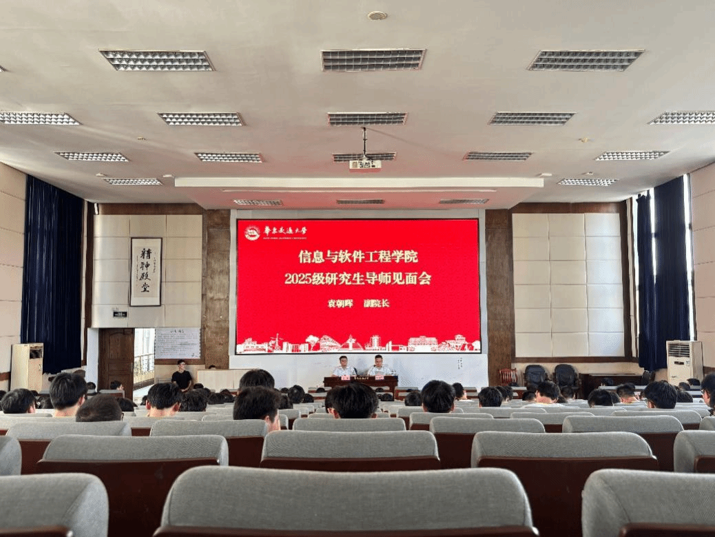 于南区图书馆202报告厅举办研究生导师见面会。学院院长姜楠、副院长袁朝晖、导师代表、研究生秘书、辅导员以及2025级全体研究生参加会议,会议由辅导员刘妮主持。