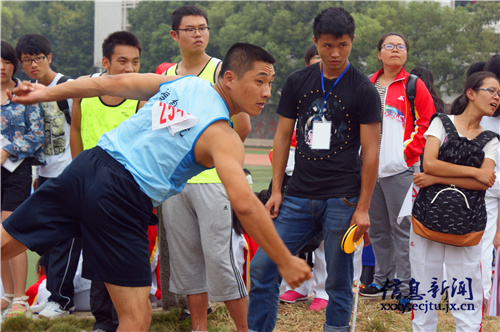 运动会男子铅球比赛中,信息学院实力选手张秋岩以11.30米的优异成绩打破原校运会记录,获得校运会铅球比赛第一名。