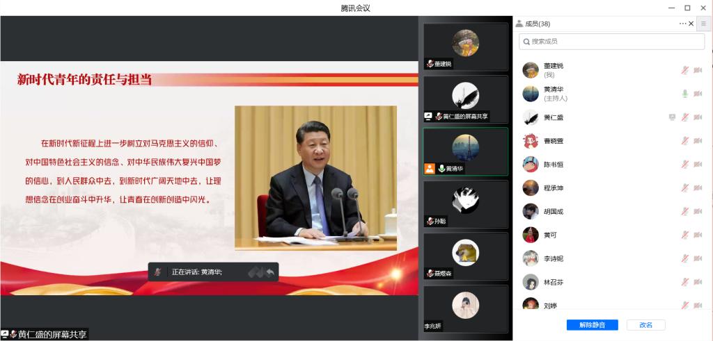 黄清华为同学们带来“青年的使命与担当”主题党课,例举了不同时期的优秀青年事迹,深度阐述青年在祖国发展、民族复兴的伟大征程上不可或缺的历史作用,分析新时代青年的使命与当担。