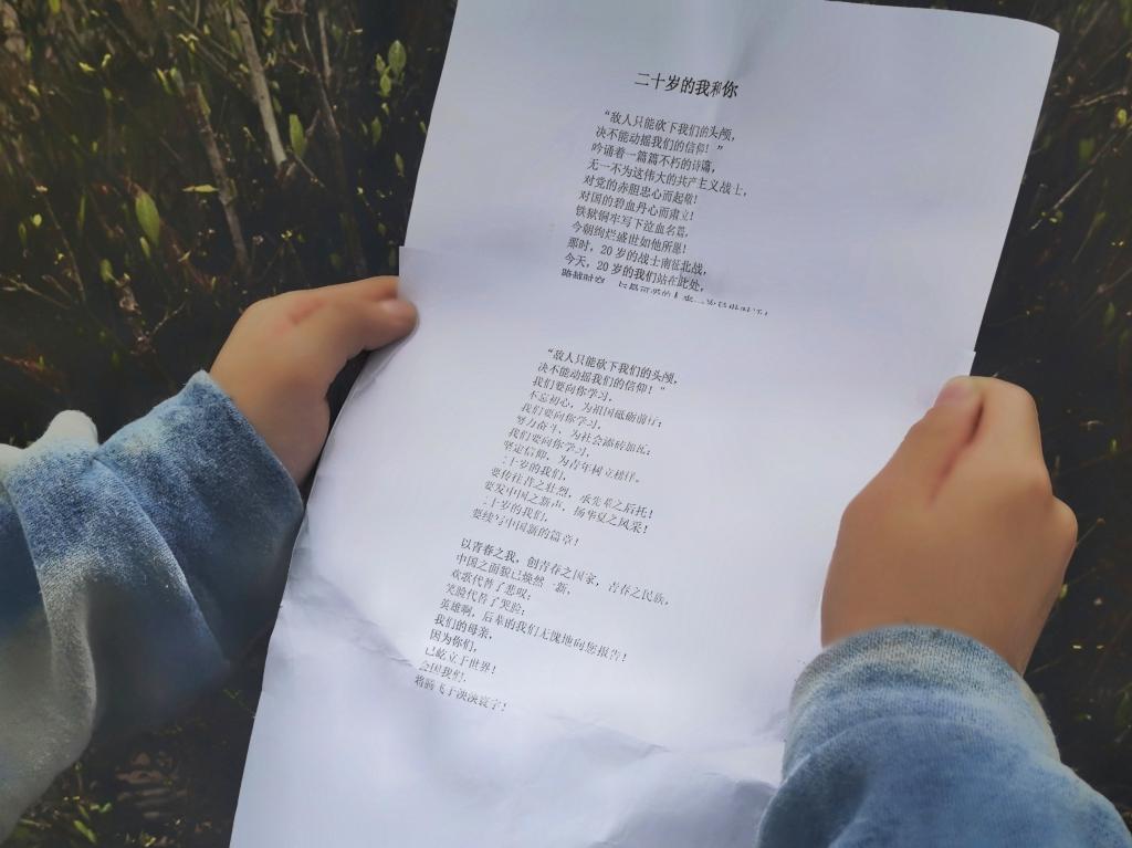 4日上午,全体学员在班主任杨青的带领下从学校出发,徒步前往方志敏烈士陵园,沿途吟唱红色歌曲,歌声嘹亮。方志敏烈士雕像下,杨青和学员依次给方志敏烈士献花,并集体默哀。全体学员献上诗朗诵《二十岁的我和你》,以示对为民族解放、为国家富强的做出奉献和牺牲的英雄先烈的哀思。