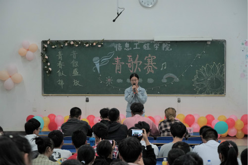 为丰富学生课余生活,加强校园文化建设,展现信息学子的青春风采,10月19日,信息学院青歌赛初赛在逸夫楼206、207教室顺利举办。活动面向信息学院的全部学生,活动在一开始就引起了众多关注。