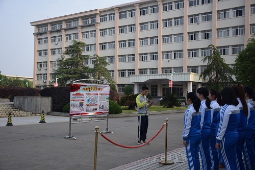 学生代表们在纪念改革开放四十周年的展板前发表演讲。“改革开放 40年,我国在经济建设、科技发展、文化教育、社会保障等领域取得了不俗的成就。”,“我国的GDP总量不断提高、神舟号系列载人宇宙飞船、探月行动等航天航空技术不断发展……”一项项改革成就让在场的同学们民族自豪感油然而生。