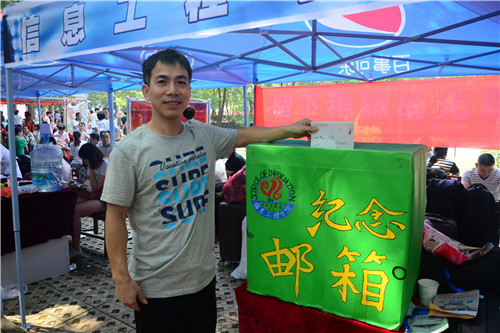 “纪念邮箱”则为新生家长提供一个表达心声的机会,志愿者提供“亲情”信封,孩子家长把对孩子的嘱托汇聚成一行行文字,传递来自邮筒的爱,这份来自家长的“惊喜”也会伴随着合影照片在军训后送到新生手中。“趁着孩子不在,刚好把我的想法告诉他”,新生李宇轩妈妈笑着说