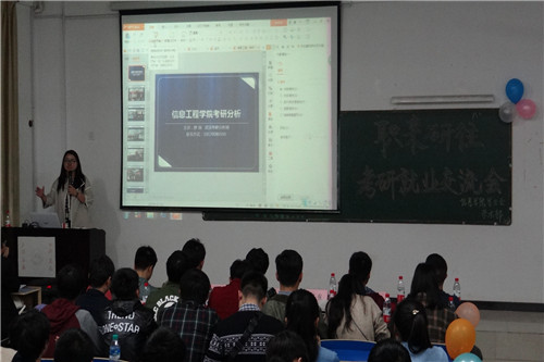 减少和避免低年级同学在考研和就业方面的盲目性,激发同学们的学习与考研热情,4月24日,由学生会学术部承办的“职来研往”考研就业交流会于教14栋212室召开资深考研分析师廖保老师、12级信息2班孟帅、12级计算机1班孙兴作为主讲嘉宾应邀出席本次交流会