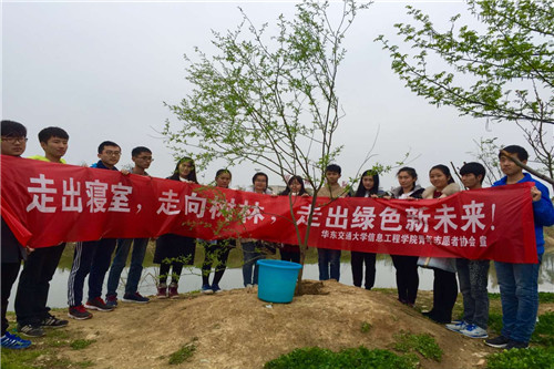 3月12日,信息工程学院青年志愿者协会志愿者队来到南昌市南昌县瑶湖森林公园,开展了以“植绿,爱绿,护绿”为主题的植树节活动,志愿者们在瑶湖空旷的土地上种下带来的几棵树苗,为瑶湖森林公园又添一片绿色。除此之外,志愿者们还在公园里向来往的游人宣传保护绿色的生态理念,呼吁更多人参与保护树木的行列之中。