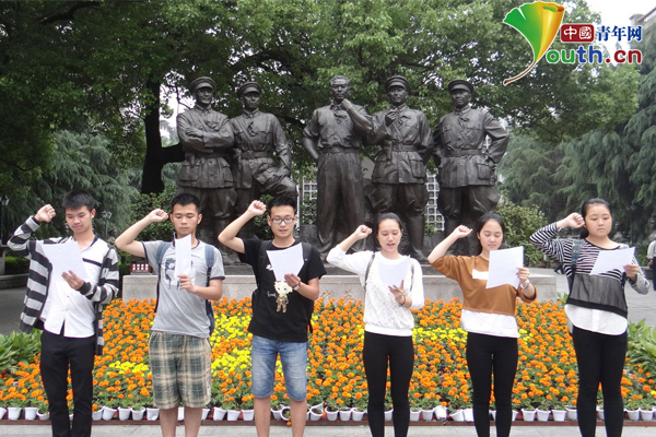 入党积极分子,为贯彻落实习近平总书记提出的“两学一做”,我们决定努力学习党章党规和习近平总书记系列讲话精神,并签下对祖国母亲的承诺书,努力做一名合格党员,为祖国的明天而奋斗。观看的行人纷纷为其点赞,一位身穿军灰色衬衣的八旬老人激动地感叹道:“你们大学生就是祖国的未来。”