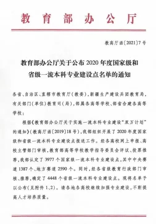近日,根据《教育部办公厅关于公布2020年国家级和省级一流本科专业建设点名单的通知》,日本av片