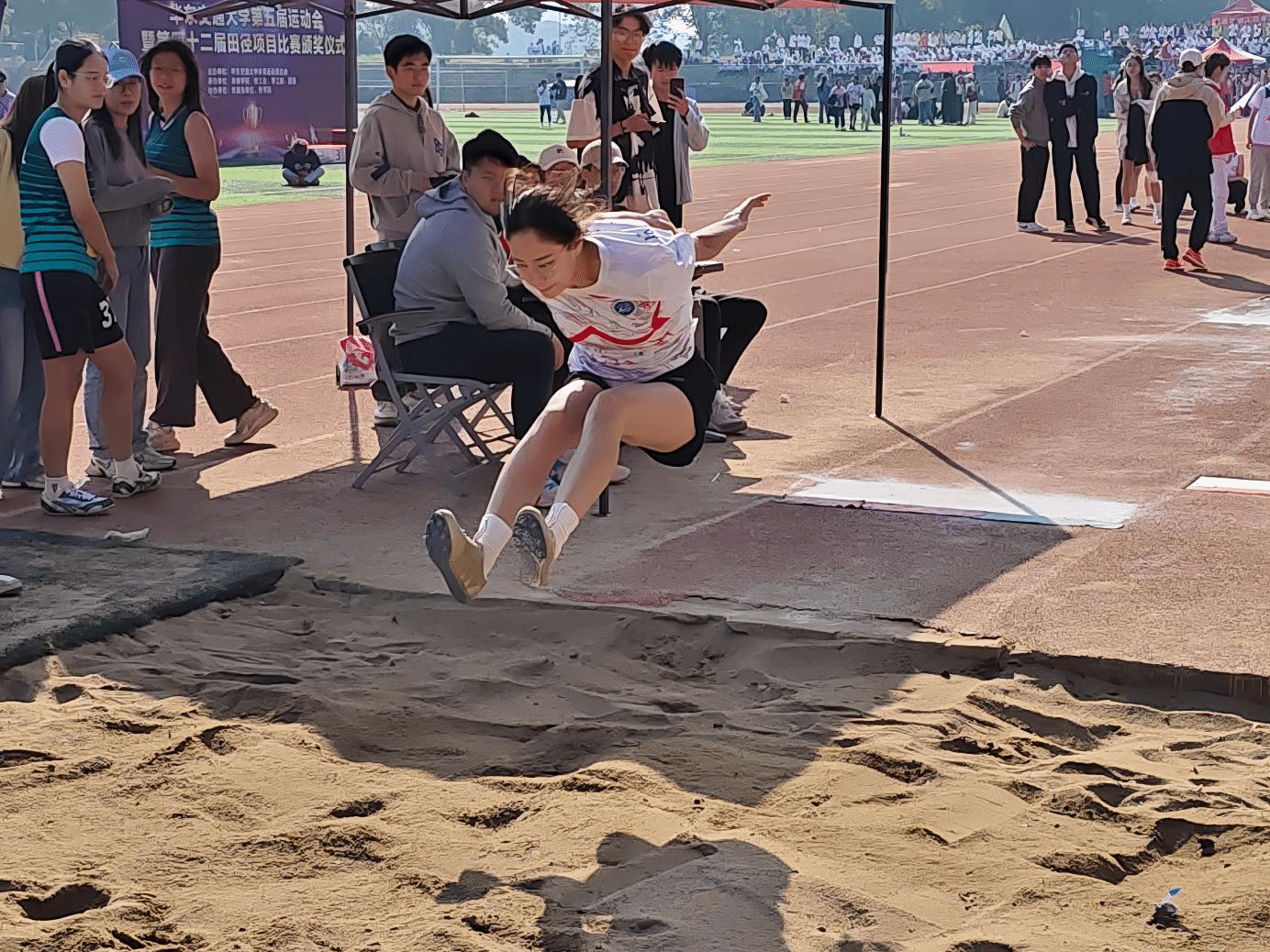 举行的第五届运动会暨第四十二届田径项目女子跳远决赛中,信工学院运动员李兰怡凭借惊人的爆发力从众多参赛选手中脱颖而出,荣获本届女子跳远项目季军!