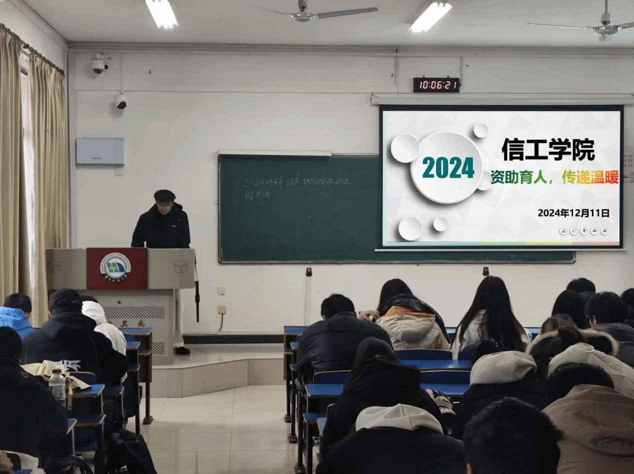 从2024年12月09日至13日,学院资助宣传大使们走进2024级学生班级,召开了资助政策的宣讲活动,他们详细介绍了国家奖学金、国家励志奖学金、国家助学金以及国家助学贷款等多种资助项目的标准和申请条件。重点向同学们介绍了勤工助学,希望能让有需要的同学有更多机会通过劳动获取报酬以减轻家庭负担,同时也可以提升他们的一些职业技能和社会实践能力。同时,还向同学们介绍了学校资助中心举办的一些“暖心慰问”活动。