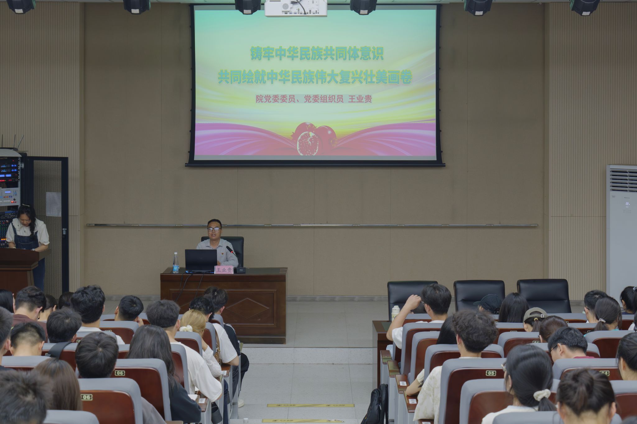 分党校于教五栋108报告厅举行第二期发展对象暨入党积极分子培训班第五讲党课。课程以《筑牢中华民族共同体意识,共同绘就伟大复兴壮美画卷》为题,由学院党委委员、党委组织员王业贵主讲,培训班全体学员参加。