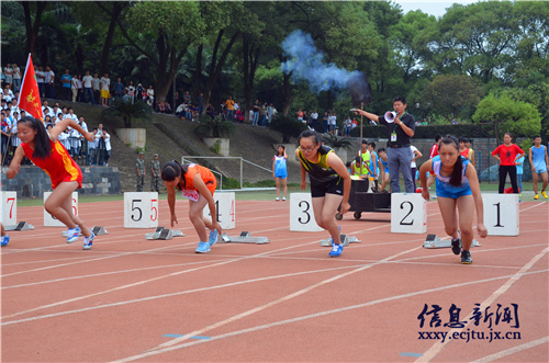 在信息四位运动健儿的努力下,信息学院取得男子4*100米接力赛第二名。