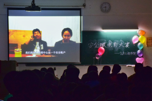 电子信息三班的微电影《迷雾》剧情跌宕起伏,博得众彩。该电影以网恋为题材讲述了情感孤独的小鹏网上恋爱惨遭绑架的故事。电子信息二班的微电影《贷价》用蒙太奇的艺术手法向观众道来了大学生因贷款迷失自我,最后不堪忍受压力的故事,获得观众的一致好评。计算机三班的微电影《狩猎活动》立场新颖,讲述了pua成员把恋爱当游戏,把女生当猎物的故事,以此劝诫学生提高警惕,理智对待爱情。