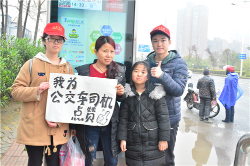 志愿者邀请路人为公交车司机点赞