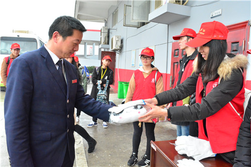 志愿者为公交车司机发放暖心礼物