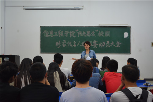 为迎接45周年校庆,展示在校学生积极向上的精神面貌,塑造“情智双全,知行合一”的学生榜样。6月3日,信息学院于教14栋114室召开“阳光男生”校园形象代言人选拔赛动员大会。院党委副书记田艳霞,团委副书记杨青出席会议,信息学院13、14、15级各班班长和文体委员参加此次大会。
