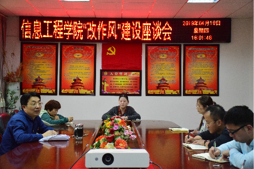 为响应学校要求,落实“三风”建设,4月18日信息工程学院于教五栋小会议室举办信息工程学院“改作风”建设座谈会。信息工程学院党委书记汤兆平出席并主持会议,学院党政办、实验室及学工办代表参加会议。