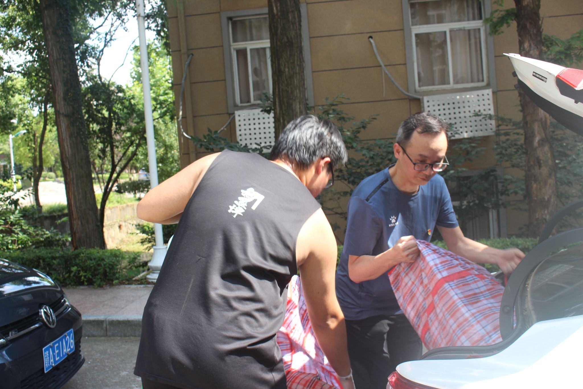 教工党员用私家车帮助同学搬运行李