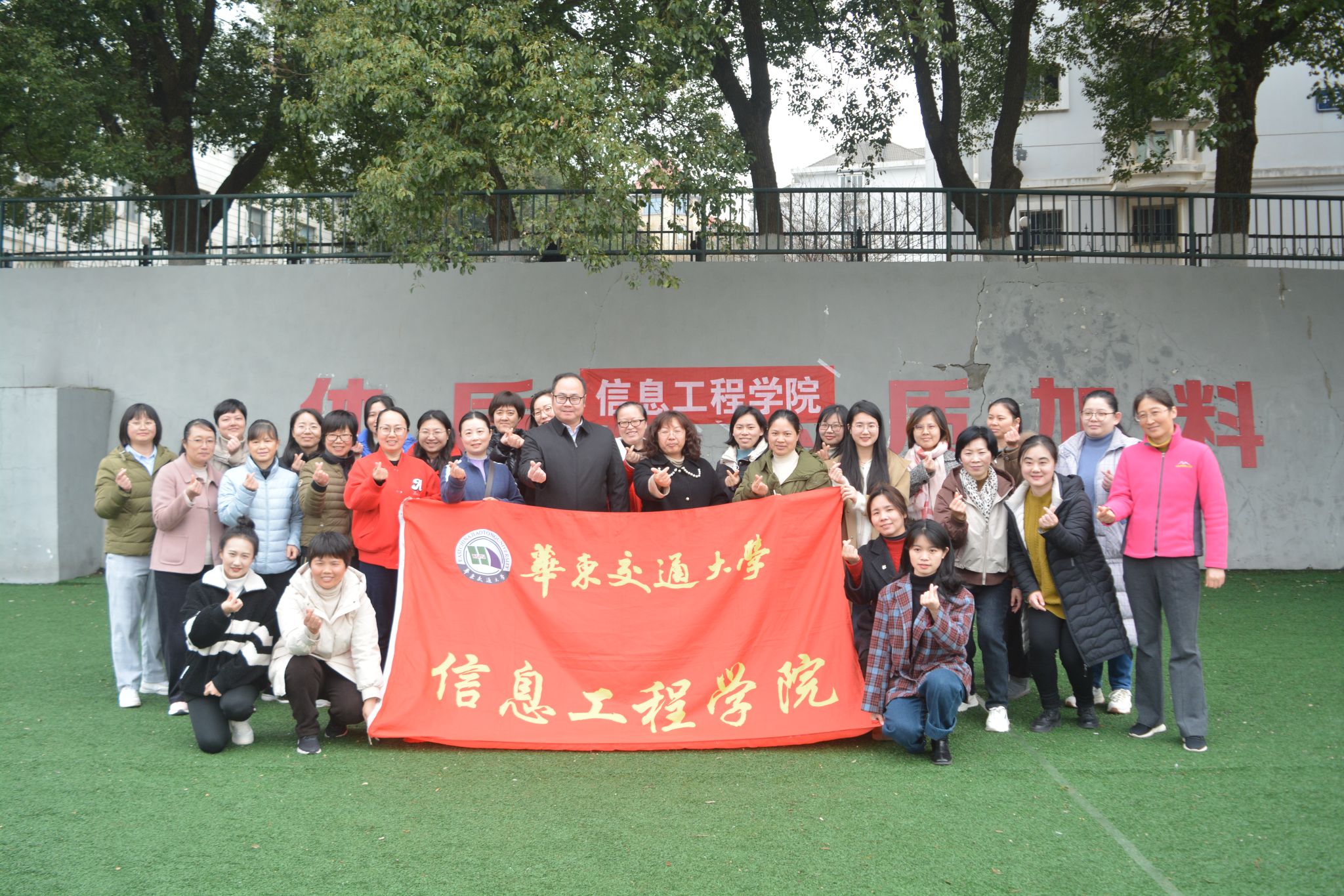 女教职工的良好形象,在第114个“三八”国际妇女节来临之际,信息工程学院工会在院党委的领导下和校工会的关心指导下,在南区田径场举办以“灼灼华交,巾帼同行”为主题的系列趣味运动,院党委副书记冯荣刚出席,院全体女教职工参加。