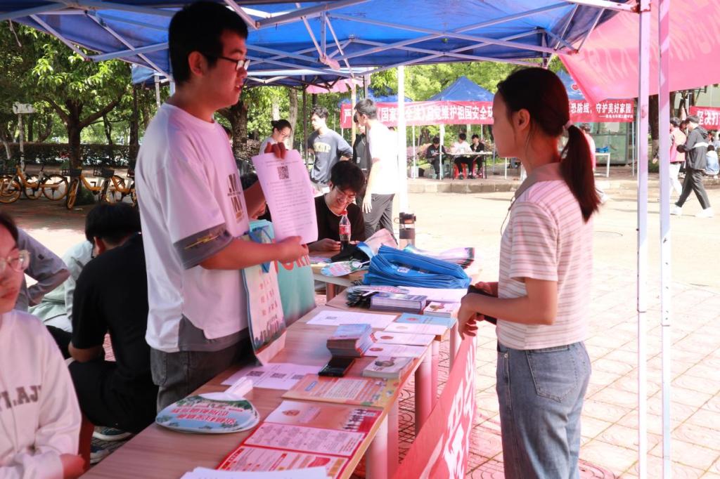 为扎实有效推动总体国家安全观宣传教育,进一步增强学生国家安全意识,4月15日,信息学院于南区一食堂门口开展“全民反恐,共创平安,识恐防恐,人人有责”国家安全宣传活动。