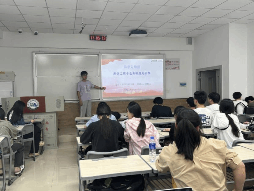 6月5日,信息工程学院举办 “信息先锋说”第三十八期分享交流会。支部成员刘魁元围绕“通信工程专业考研规划”进行分享,会议由通信工程学生党支部主持。通信工程2021-1班、2021-2班全体同学参加此次分享会。