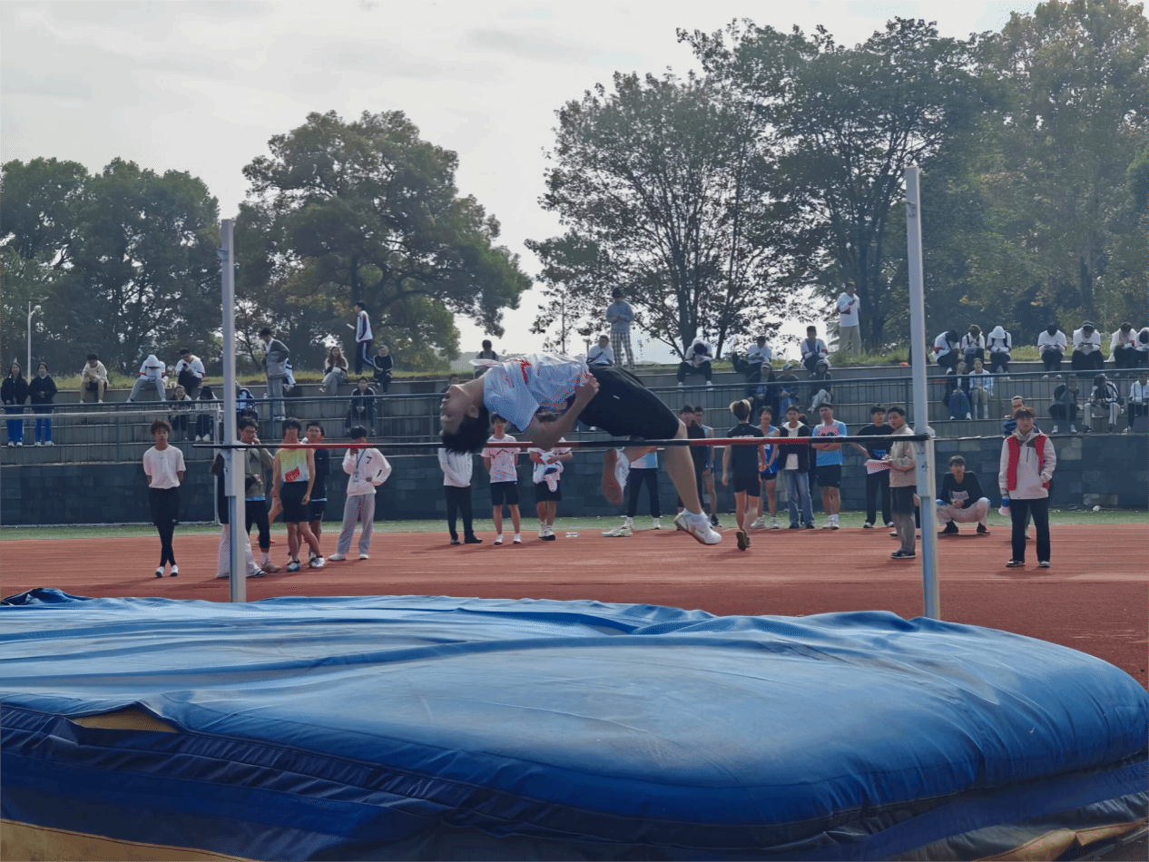 10月30日,在校运会男子跳高预决赛中,信工学院廖子俊夺得第七名。