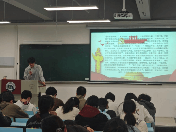 刘骏恒同学则从情节内核与精神象征角度出发,梳理了片段中人物行为背后的革命逻辑与信仰支撑,引导同学们从更宏观的视角理解《红岩》所传递的“前仆后继、不畏牺牲”的革命精神,进一步加深了大家对红色经典的理解。